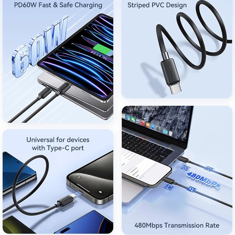 این کابل با پشتیبانی از توان 60 وات، امکان شارژ سریع انواع گوشیهای اندروید، تبلتها، پاوربانکها و بسیاری از لپتاپهای سبک را فراهم میکند.
