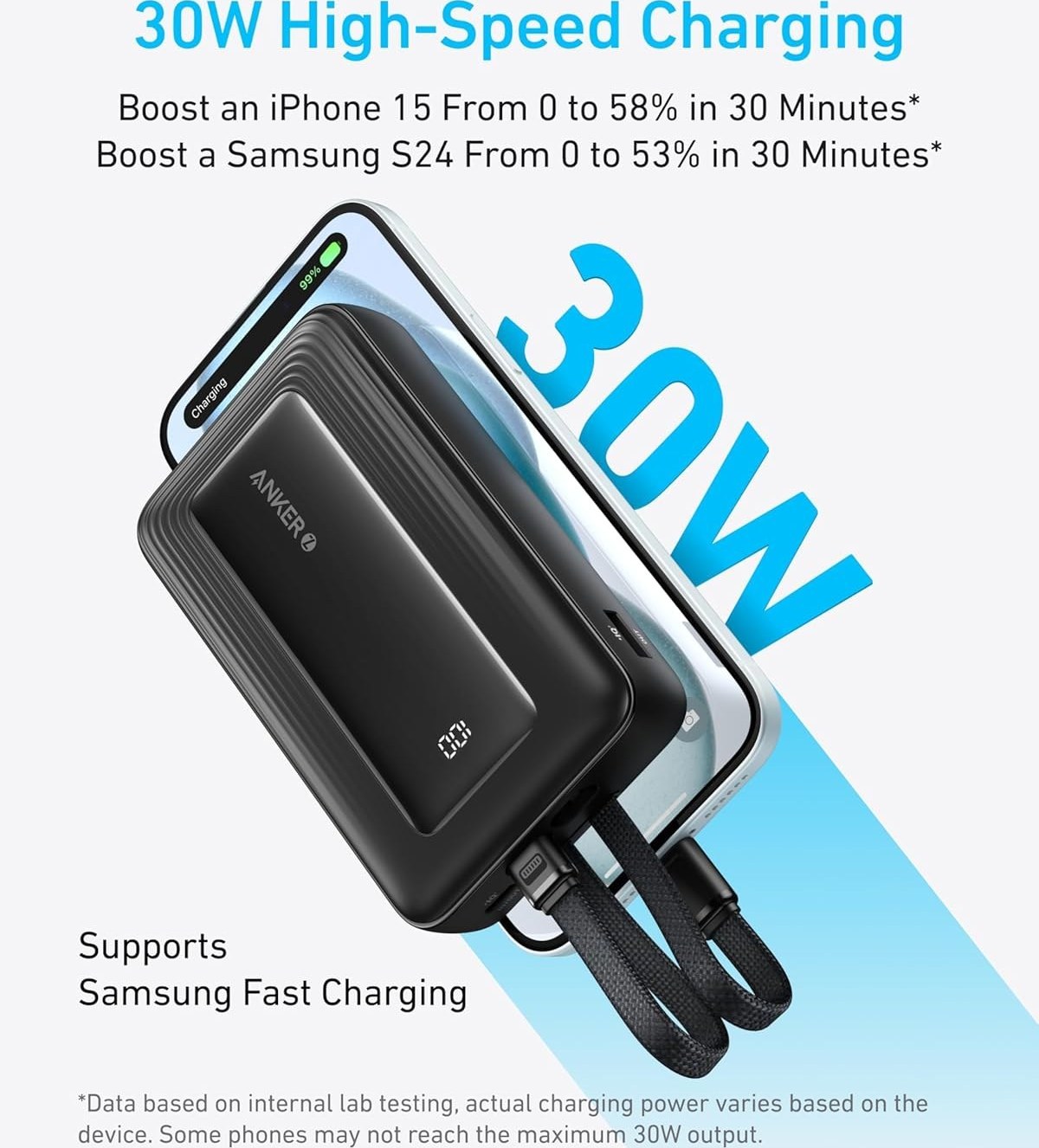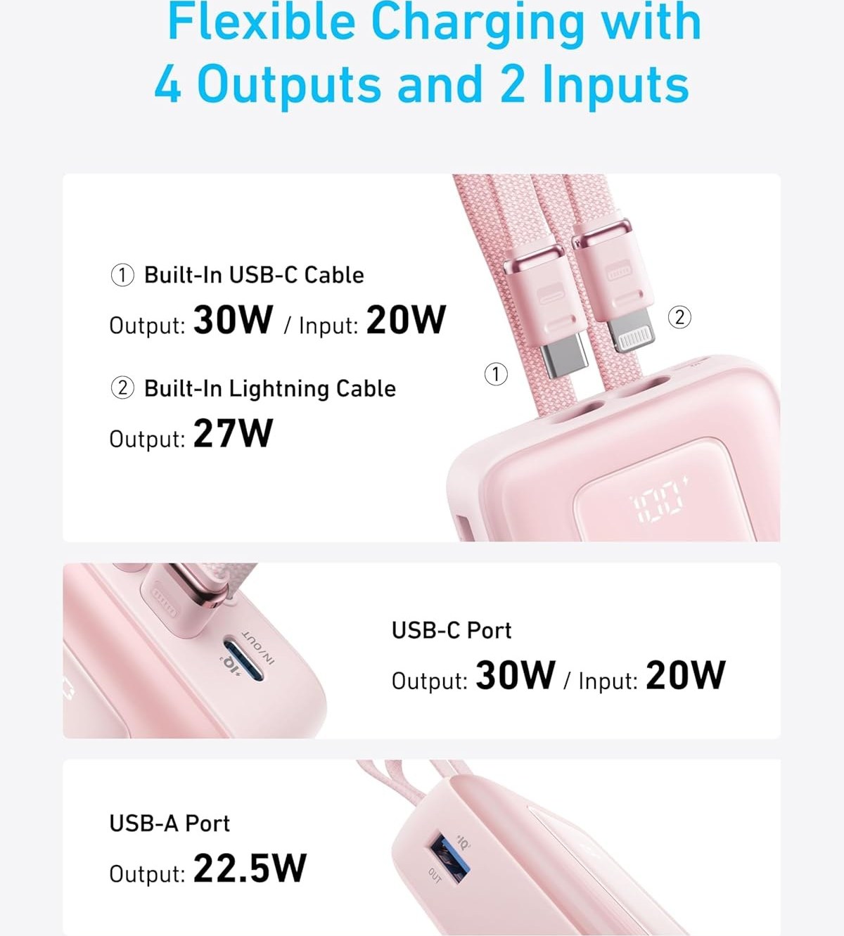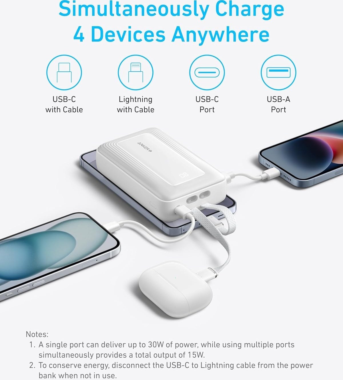 ولتاژ خروجی : کابل Type-C: تا 30 وات / پورت Type-C: تا 30 وات / کابل لایتنینگ: تا 27 وات / پورت USB: تا 22.5 وات